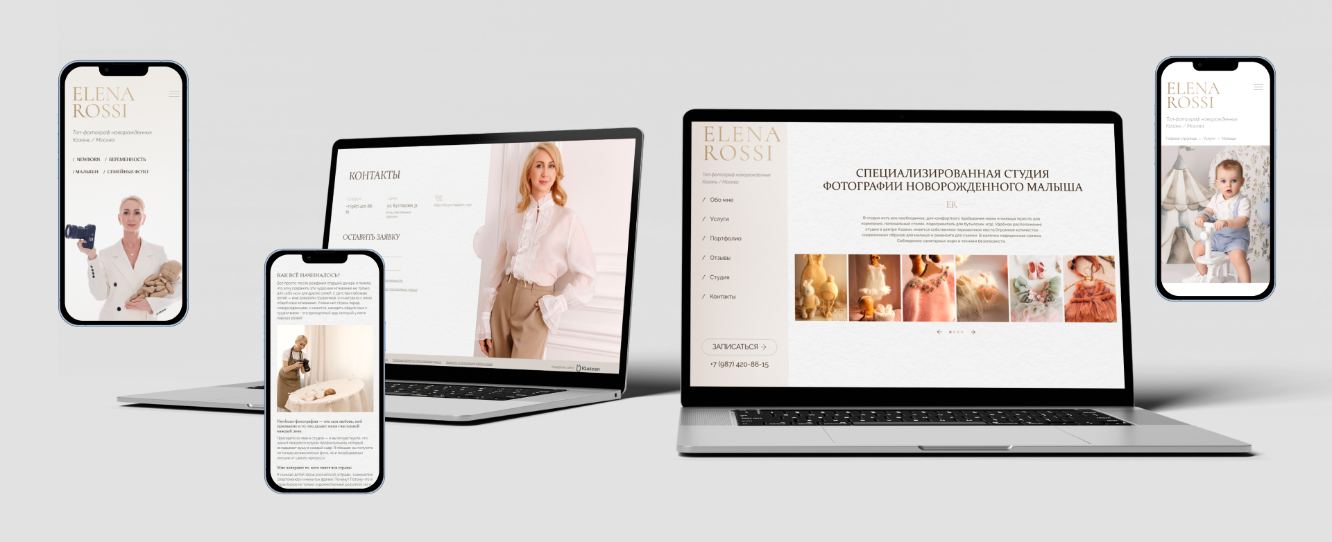 Создать сайт, который формирует доверие и вызывает желание получить такой же уровень качества, подхода и внимания к деталям. Отдельной задачей стала чёткая отстройка от конкурентов. В нише newborn-съёмки сайты часто выглядят почти одинаково — похожие тексты, одни и те же акценты и визуальные решения.