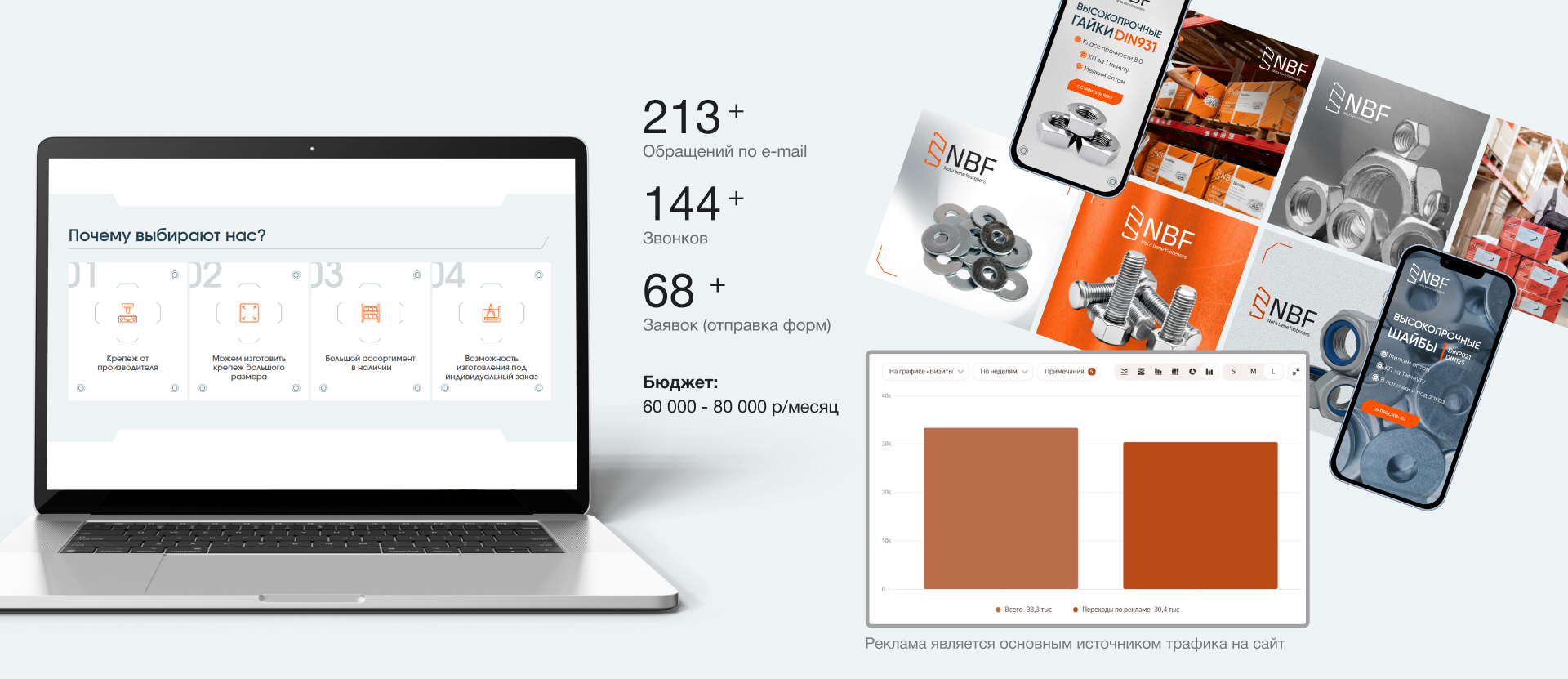 Создать сайт, который будет помогать оптовым клиентам быстро находить нужный крепёж, узнавать цены и условия поставки, а компании — привлекать больше покупателей и экономить время на обработке заказов, укрепляя при этом профессиональный имидж.
