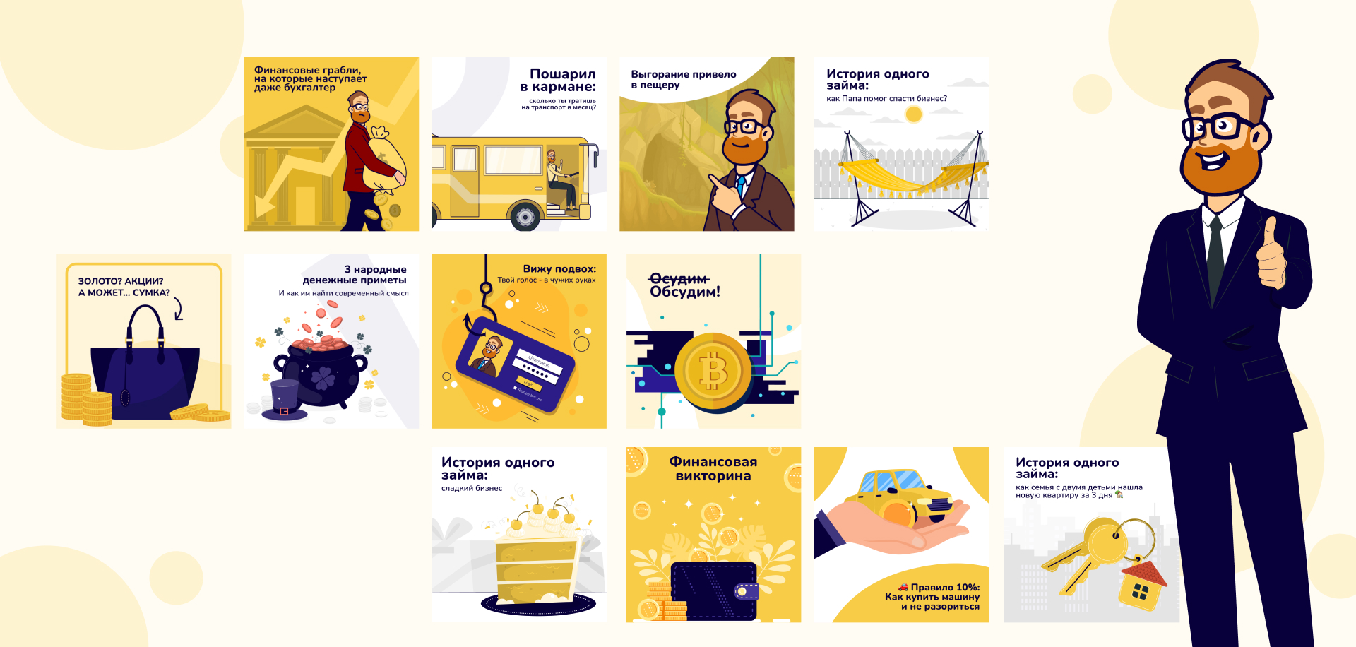 Вместо банальных постов об услугах компании, мы подошли к процессу творчески. Рассказали о необычных случаях, при которых клиенты обращались в компанию, делились полезными советами по сфере финансов в игровой форме, публиковали видео с жизненными забавными ситуациями, связанными с деньгами.